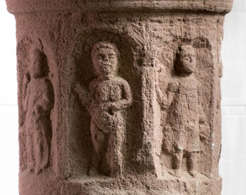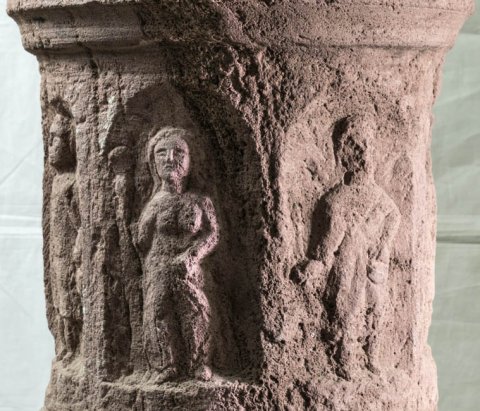 - Mythische Figuren: zylindrischer Stein mit Bogennischen, darin stehende Wochengötter Luna, Mars, Mercur, Jupiter, Venus, Saturn, Sol. Unten einfach profilierter Sockel, oben Doppelwulstbassis für die Säule.