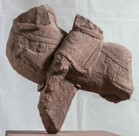 - Mythische Figur: reitender Jupiter, unter dem Pferdebauch eckige Stütze.