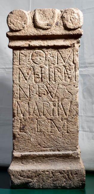 - I(ovi) O(ptimo) M(aximo) / M(arcus) Firmi/nius / Martius / l(ibens) l(aetus) m(erito)
