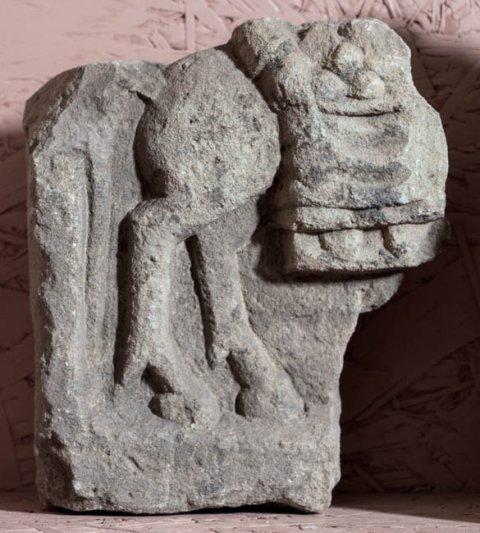- Mythische figur: frontal auf einem nach rechts gehenden Pferd sitzen Epona mit Fruchtschale auf dem Schoß.