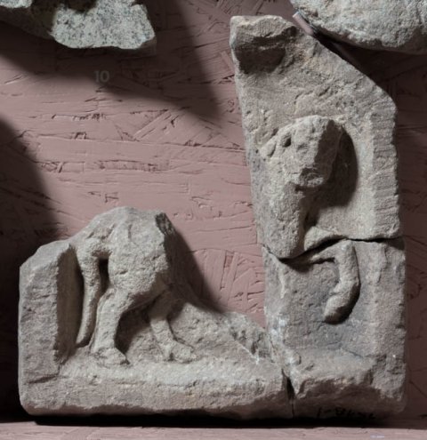 - Mythische Figur: Epona-Relief mit Giebel. Erhalten ist das nach rechts gehende Pferd.