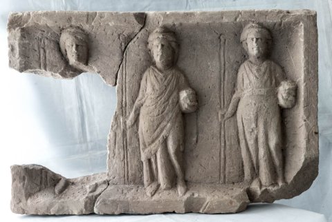 - Mythische Figuren: drei stehende Matronen mit Szepter und Fruchtkorb.