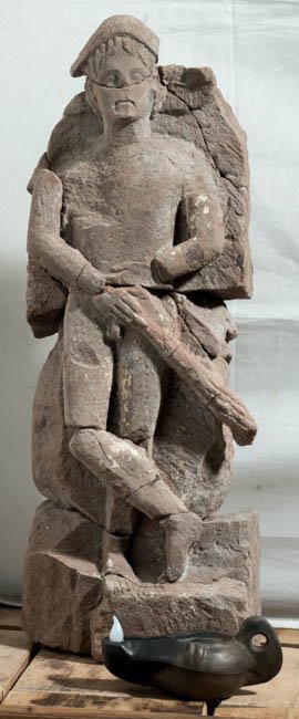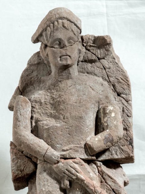 - Mythische Figur: nackter Cautopates mit phrygischer Mütze und Fackel.