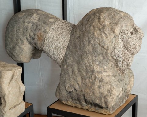 - in 2 Teile zerbrochen, stark verwittert, tlw. ergänzt