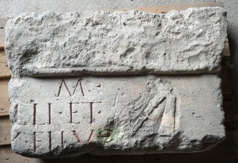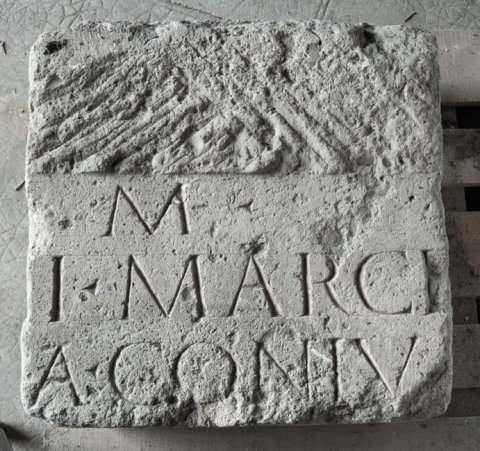 - D(is) M(anibus) m(emoriae) / Secun[d]i Marcelli et / Matro[n]a coniux ei{i}us