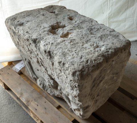 - seitlich verbr. (auf Anschluss gearbeitet ?), unten abgebr., oben Hebeloch