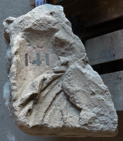 - unten, rechts u. hinten abgebr., Relief tlw. abgearbeitet