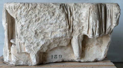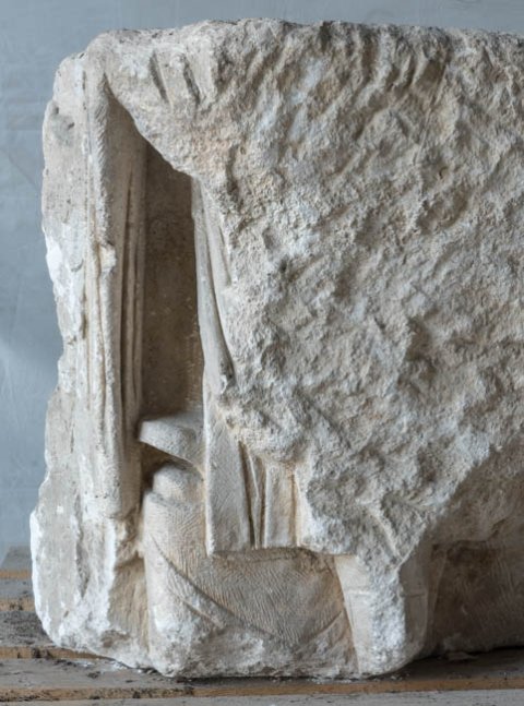 - oben abgeschnitten, andere Seiten verbr., Relief tlw. abgearbeitet