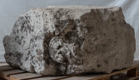 - linke obere Ecke eines Relieffeldes (?) mit Widderhorn (?)