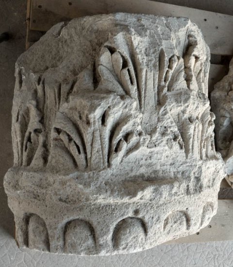 - Korinthisches Kapitell mit Ansatz des kannelierten Säulenschafts