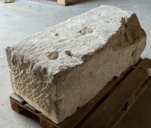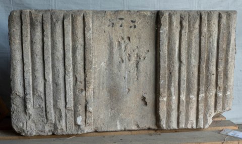 - Block mit zwei kannelierten Pilastern, dazwischen glatte Fläche
