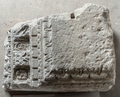 - Konsolgesims: Kyma, Eierstab, Zahnschnitt, Blattkonsolen, dazwischen Rosetten und Ranken, Kyma.