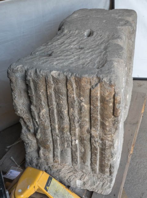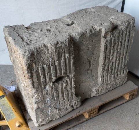 - Ante mit zwei kannelierten Pilastern, (links Eckpilaster). Auf der Rückseite rechts abgearbeiteter Pilaster, links Pilaster mit Akanthusdekor.