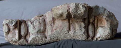 - Konsolgesims mit Blattkonsolen, dazwischen Felder mit Blüten, gerahmt mit Perlstab