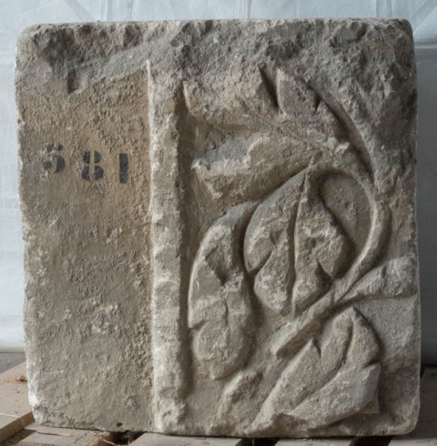 - vertikale Rahmenleiste, rechts davon Blattranke, links glatte Fläche