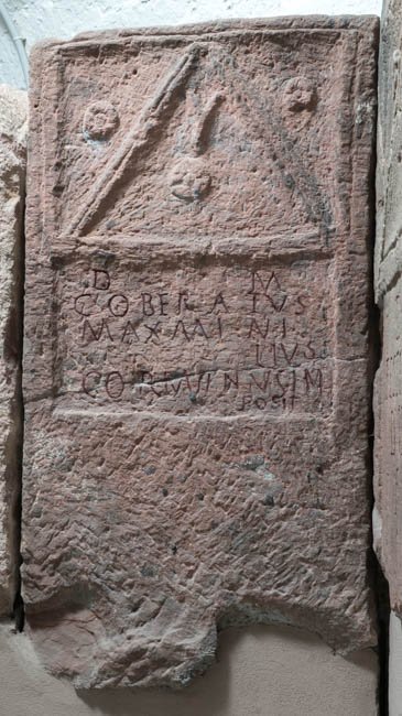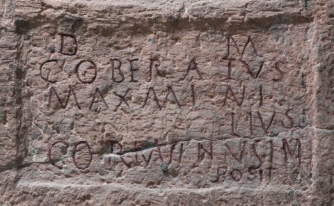 - D(is) M(anibus) / Coberatus / Max(i)mini / [fi]lius? / CormiIIus? m(onumentum)? / pos(u)it
