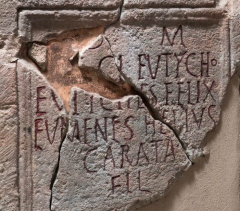 - D(is) M(anibus) / Eutici Eutycho / Eutyches Felix / Eumenes Helius / Carata / fil(ii)