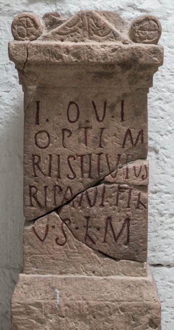 - Iovi / Optimo / Restitutus / Ripani fil(ius) / v(otum) s(olvit) l(ibens) m(erito)
