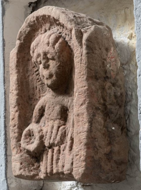 - Mythische Figur (?): stehende bekleidete Frau (Göttin ?) mit Schale in der Rechten.