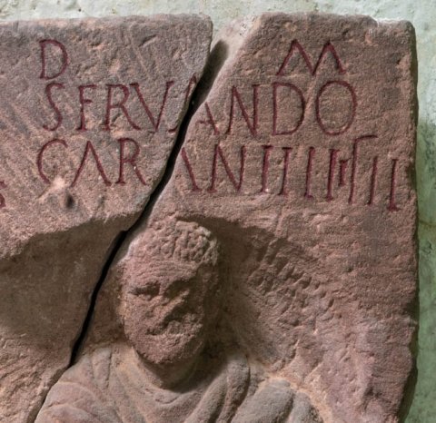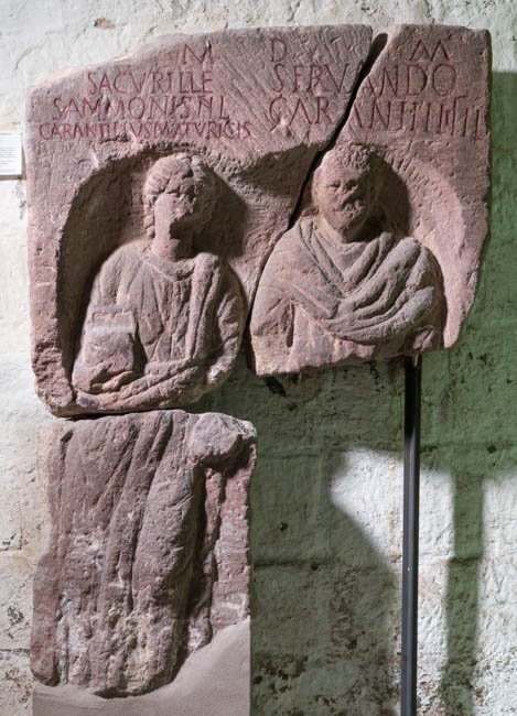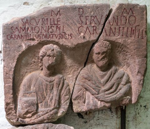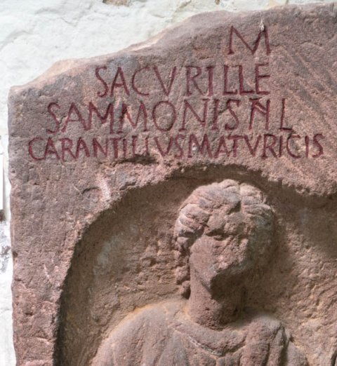 - D(is) M(anibus) / Sacurill(a)e / Sammonis fil(iae) / Carantillus Maturicis / fil(ius) mar(itus) / p(onendum) c(uravit) // D(is) M(anibus) / Servando / Carantilli fil(io)