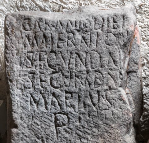 - ---] / Carantodi(a)e Ianuari(a)e [f]ili(a)e / Maternio I[---]tiano filio / Secundano Felici filio / Secundanus Carantodi / maritus e[t] pater infel(i)ci(ssimus) / p(onendum) [c(uravit)]