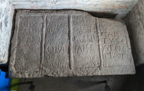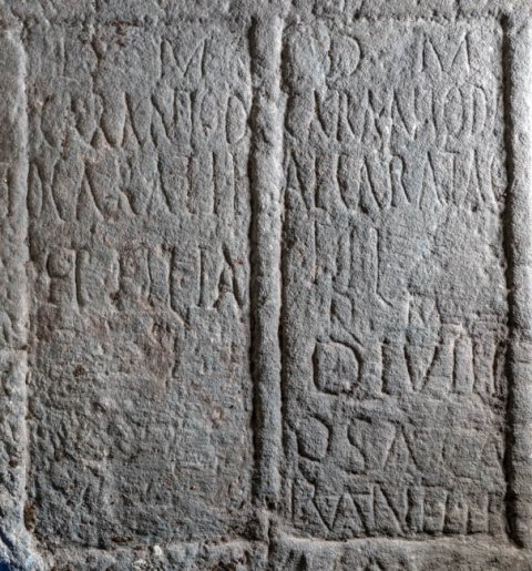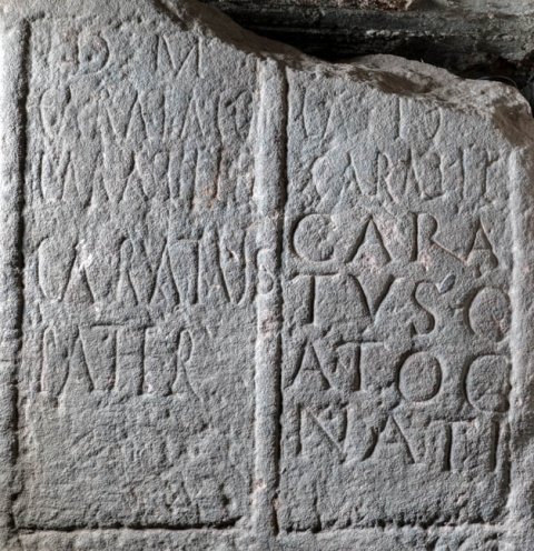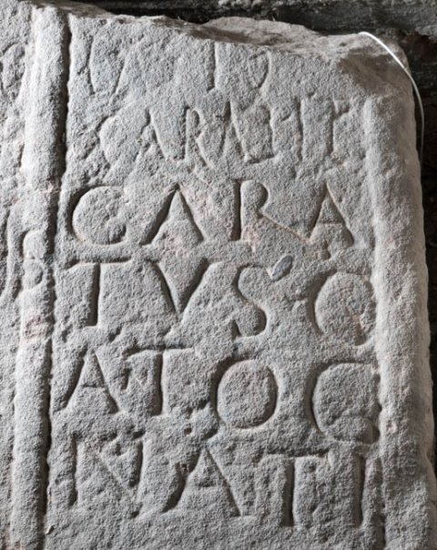 - D(is) M(anibus) / Carantod/io Carati / h(eres) filia // D(is) M(anibus) / Carantodi/ae Caratac[i] / fil(iae) // D(is) M(anibus) / Diviti/osa(e) Ca/ranti f(iliae) // D(is) M(anibus) / Carataco / Carati fil(io) / Caratus / pater // D(is) [M(anibus)] / Cassio / Carati f(ilio) / Cara/tus C/antog/nati