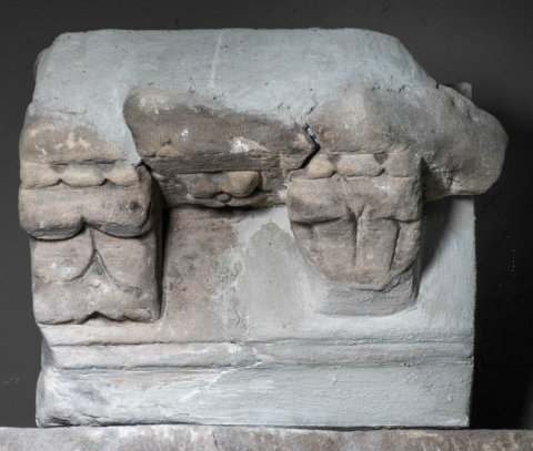 - seitlich abgebr., verwaschen, zugehöriger Eckblock verloren