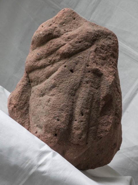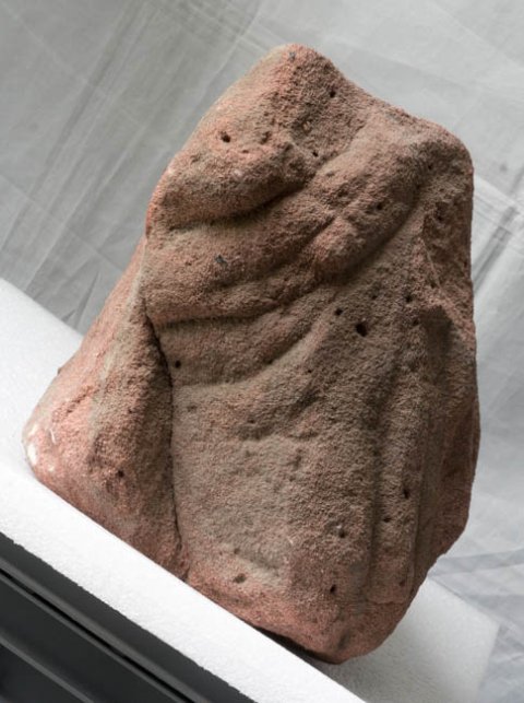- Fragment der Beinpartie einer stehenden bekleideten Figur
