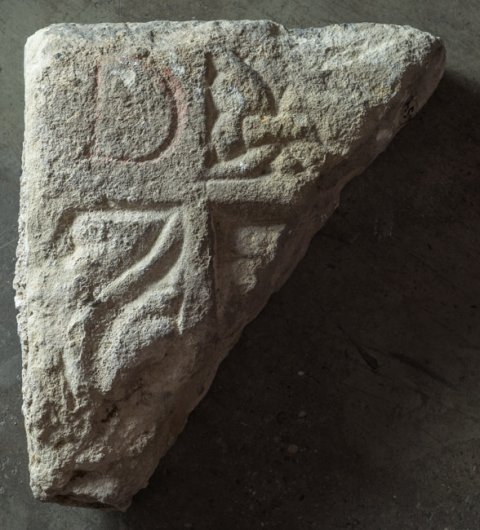 - linke obere Ecke des Schriftfeldes, seitliche Rahmenleiste mit Ranke, obere mit Palmettenfries.