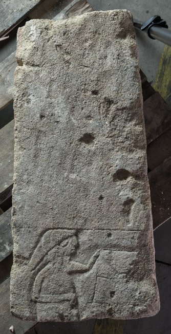 - Totenopfer: Frau neben einem Tisch mit Gefäß (Ritzzeichnung)