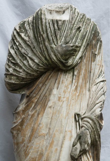 - stehender Togatus, in der linken Hand Rolle (volumen)