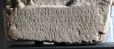 griechisch: Ἥρωι Ἐπικόῳ (Ἐπηκόῳ) Ῥοῦφ[ος] / Ῥούφου κατ’ ἐπιταγήν /