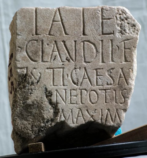 - ---] / [pro incolum]itate / [Neronis Claudii div]i Claudii f(ilii) / [Germanici Caesaris nepo]tis Ti(beri) Caesar/[is Augusti pro]nepotis / [Caesaris Augusti pontificis] maximi / [---