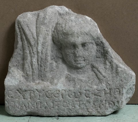 - Porträtbüsten einer Familie. Erhalten sind Kopf und Schultern eines Kindes (Knabe) vor zwei erwachsenen Personen.