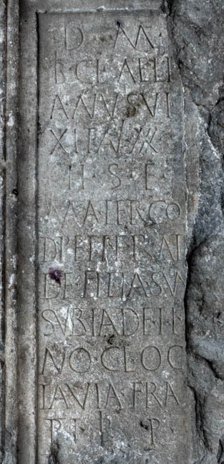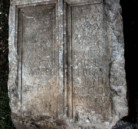- D(is) M(anibus) / Cocce/ia Mar/cel(l)ina v/ixit an(n)i(s) / LX h(ic) s(ita) e(st) / Cl(audia) Octavi/a matri / pi(entissimae) p(osuit) // D(is) M(anibus) / Tib(erius) Cl(audius) Aeli/anus vi/xit an(n)i(s) XXX / h(ic) s(itus) e(st) / mater co/d(!) petierat / de(!) filia sua / subl(ato?) a(nte?) d(iem?) et i(uniori?) / n(ato?) o(bito?) Cl(audia) Oc/tavia fra/tri pi(entissimo) p(osuit)