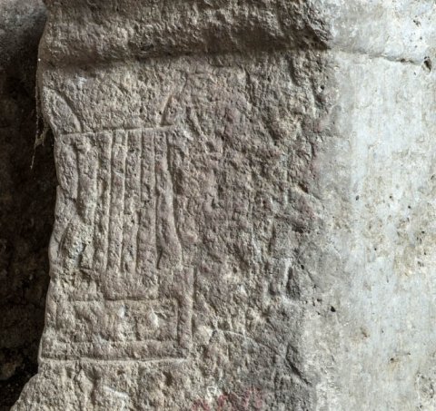 - auf der linken Nebenseite Ritzzeichnung einer Kithara