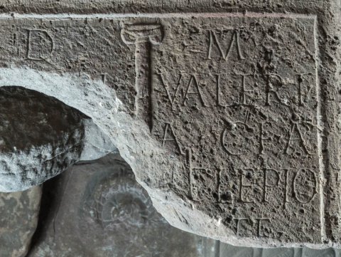 - D(is) M(anibus) // [------] / [------] / [------] / [------] / IIIIII[vir] / August(alis) / col(oniae) Scup(inorum) / vix(it) ann(os) / L h(ic) s(itus) e(st) // Valeri/a C(ai) f(ilia) A/[s]clepio/[do]te / ann(orum) L / viva se / sibi et [in]/felici / marito / f(aciendum) c(uravit)
