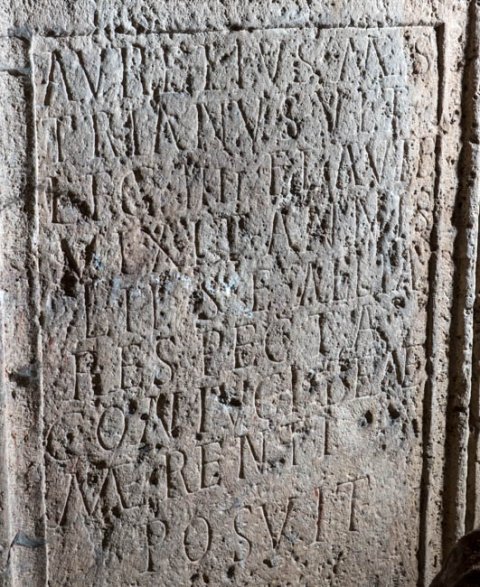 - D(is) M(anibus) [s(acrum?)] / Aurelius Mes/trianus vet(eranus) / leg(ionis) IIII Flavi(a)e / vixit annis / L h(ic) s(itus) e(st) Aelia / Respecta / coniugi bene / merenti / posuit