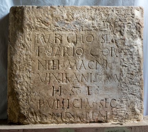 - Eutycho sta/tuario Cor/neli Magni / vixit an(n)is XXV / h(ic) s(itus) e(st) Publicia Sec/[u]nda bene / [merenti ---]