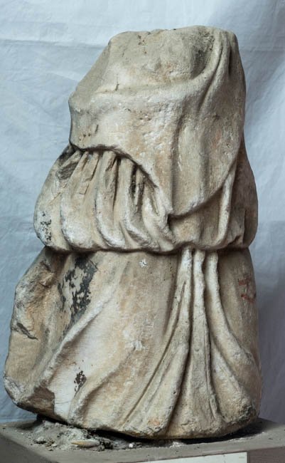 - Mythische Figur (Artemis - Diana ?): bewegte Frauenfigur in Chiton mit Überschlag.