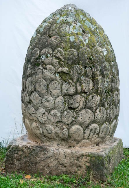 - monumentaler Pinienzapfen auf kubischem Sockel