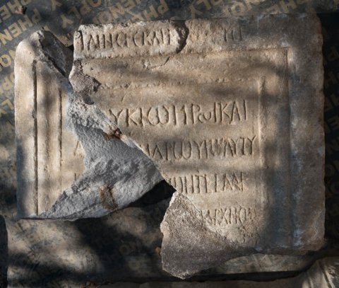 - griechisch: [ὑγ]ιαίνετε καὶ ε[ὐτυχε]ῖτε //[Λο̣]υκίῳ ἥρωι καὶ / Ἀ[λεξά]νδρῳ υἱῷ αὐτοῦ / κ[αὶ ἑαυτοῖς ζ]ῶντες Ἀλέ/[ξανδρος κ̣αὶ Δη]μ̣άρχη οἱ / γονεῖς καὶ [---] / ἐποίησα[ν μνήμης] / χά[ριν]