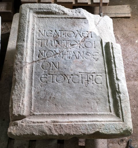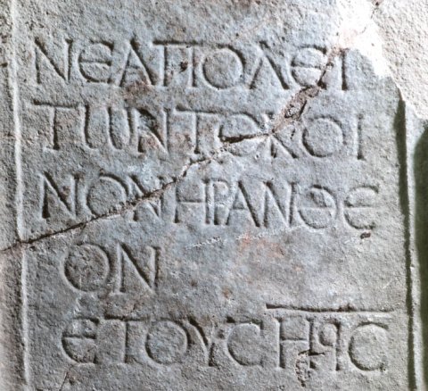 - griechisch: Νεαπολει/τῶν τὸ κοι/νὸν Ἥραν θε/ὸν / ἔτους ηϙσ