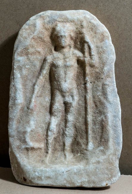 - Mythische Figur: jugendlicher nackter Dioysos (Liber Pater) mit Schulterlocken, in der Linken Thyrsosstab, die Rechte zum Panther neben seinem rechten Bein gesenkt.