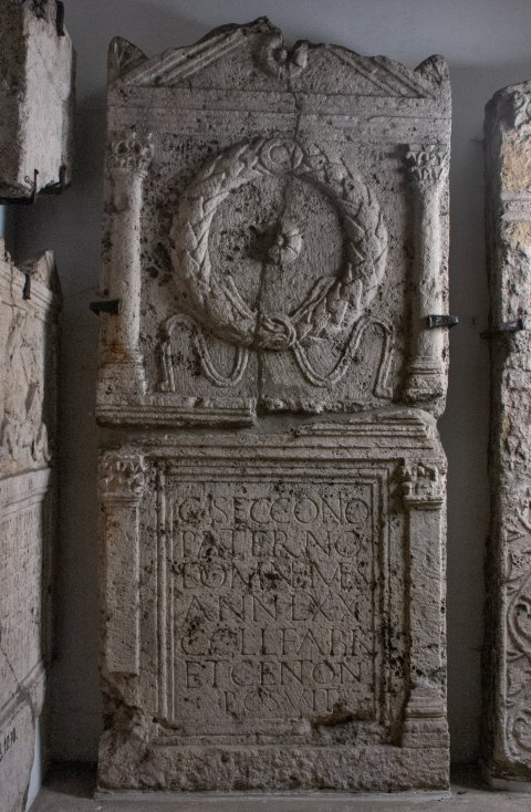 - C(aio) Secconio / Paterno / dom(o) Nemes / ann(orum) LXX / coll(egium) fabr(um) / et centon(ariorum) / posuit