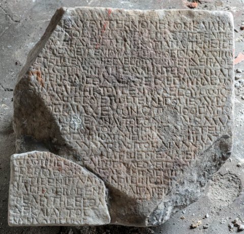 - attisches Kapitell, auf der Abacus-Oberseite Inschrift