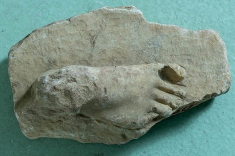 - Plinthe mit nacktem rechten Fuß, lebensgroß.