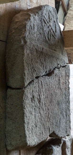 - in 2 Teile zerbrochen, unten abgebr., Oberfläche abgewittert