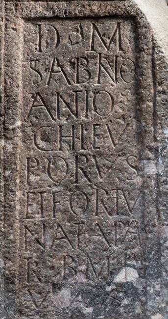 - D(is) M(anibus) / Sabino / Antio o(ptioni) / coh(ortis) L(ucensium?) Eu/porus et Fortu/nata pa/tr(ono) b(ene) m(erenti) / p(osuerunt) / v(ixit) a(nnos) XXXV