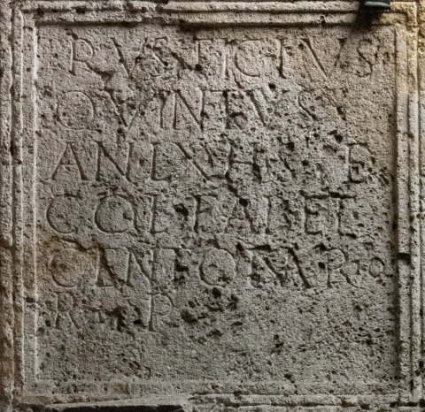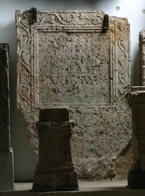 - Rusticius / Quintus / an(norum) LX h(ic) s(itus) e(st) / col(legium) fab(rum) et / centonario/rum p(osuit)